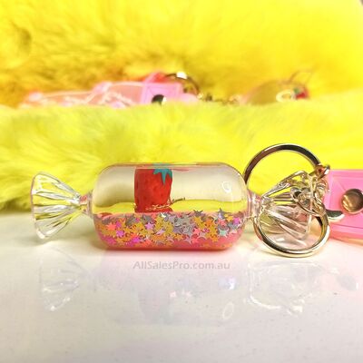 Strawberry Liquid Keyring Fancy Luxury Floating Liquid with Star